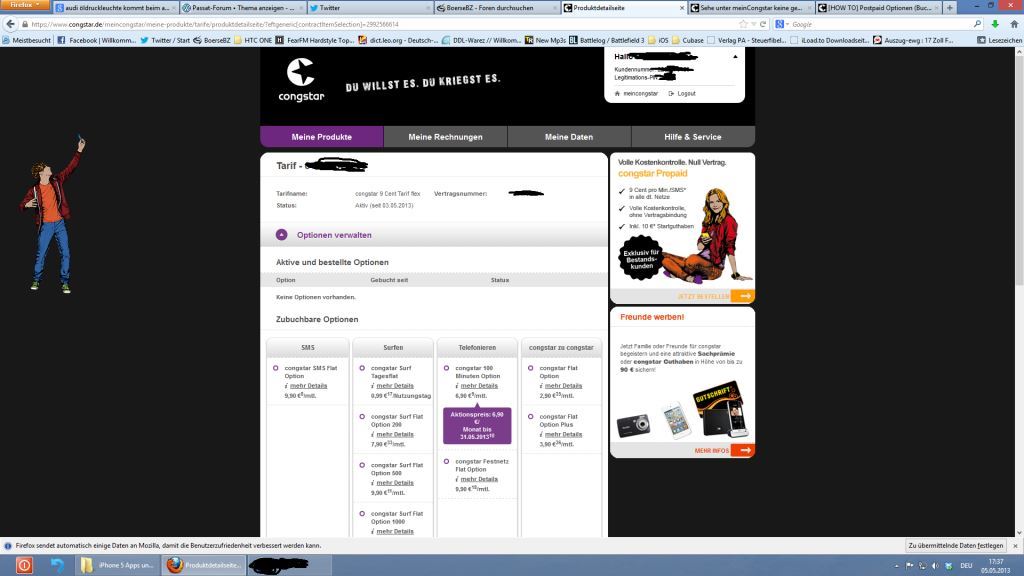 Unter meinCongstar steht aber das ich keine gebuchten Optionen habe?! Auch wird mir weder Datenverbrauch noch geschriebene SMS angezeigt?