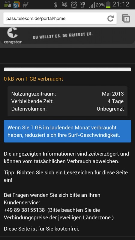 Kann es sein, dass die Datenflatrates bei Congstar immer am 1. eines Monats neu starten ? Dann würde ich mit meiner Vermutung korrekt liegen und ab 1.6. rennt mein Phone.