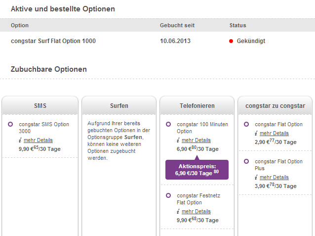 Sie können die congstar Surf Flat Option 1000 letztmalig am 08.07.2013 nutzen.