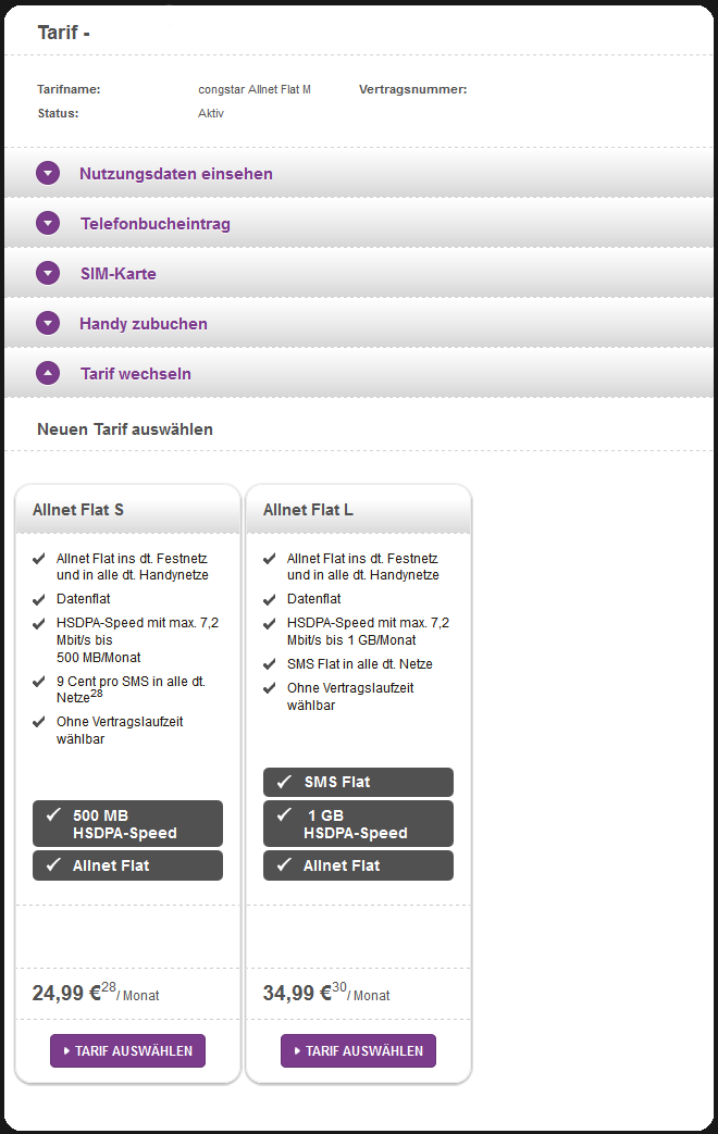 Also normal ist möglich den Tarif nach oben immer zu gehen nur nach unten das macht keiner, wie sieht's bei Congstar aus.
