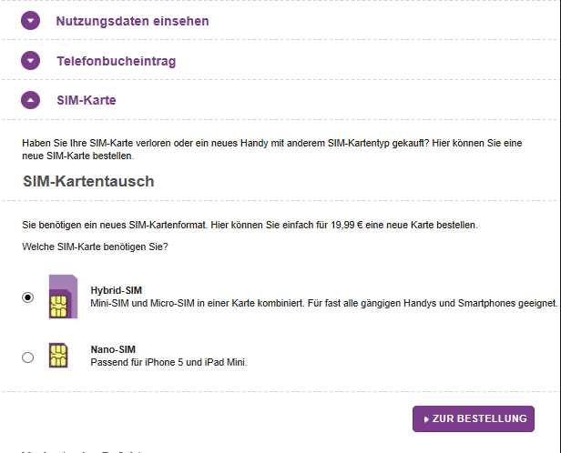 Wie Tomi bereits geschrieben hat, kannst du ganz einfach eine neue SIM-Karte über den