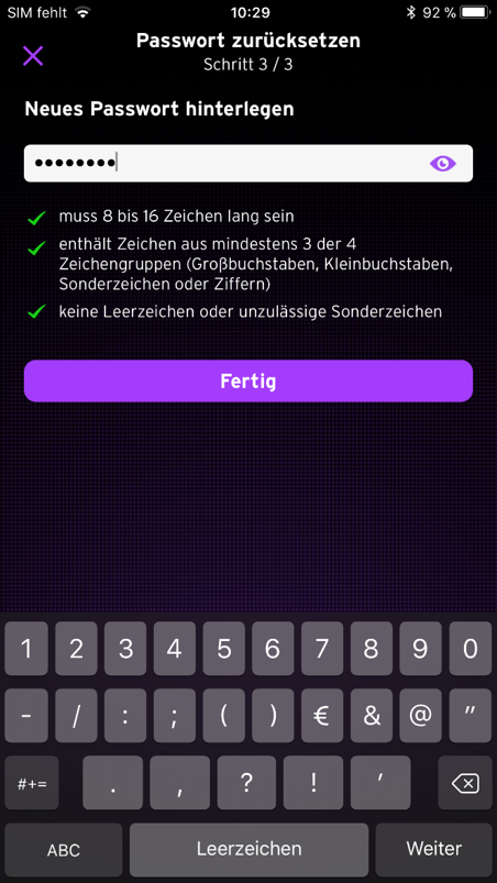 Wir bieten auch eine einfache und bequeme Möglichkeit das Kennwort direkt über die App zurückzusetzen :thumbup: