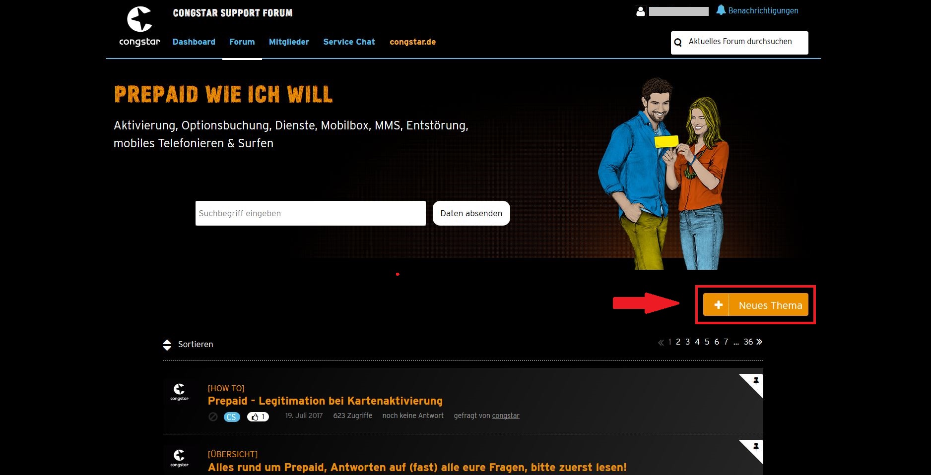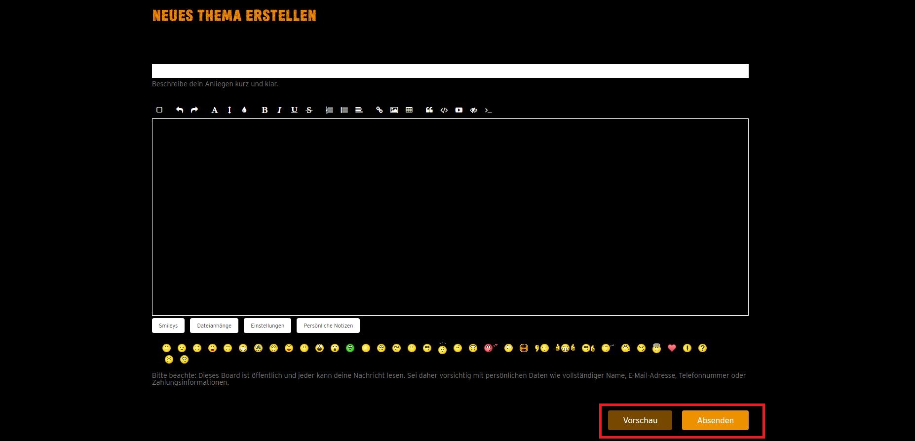 Mit einem Klick auf "Neues Thema" könnt ihr dann euer Posting erstellen: