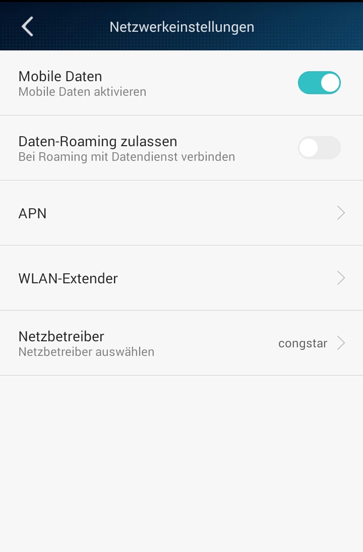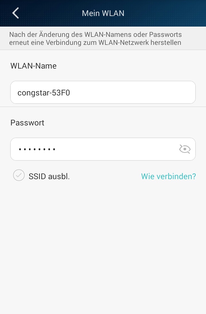 Nach dem Einschalten des W-LAN am Smartphone, Laptop, Tablet, erscheint der Huawei unter "congstar-53F0" als verfügbares Netz.