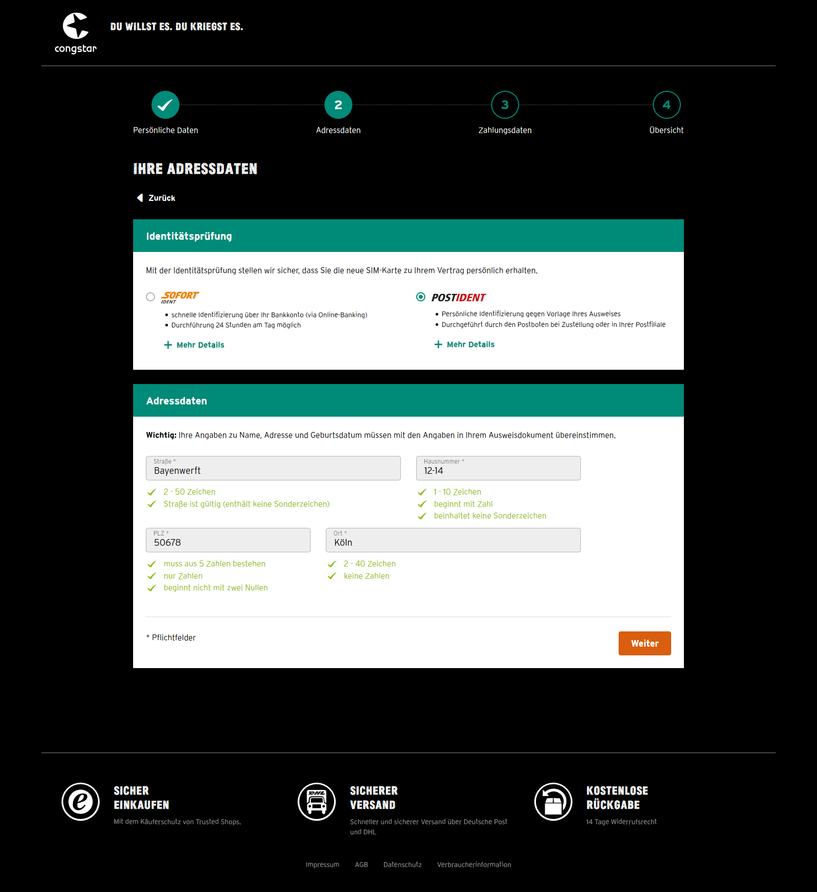 Eure Adresse gebt ihr auf der nächsten Seite an. Hier könnt ihr euch außerdem für ein Ident-Verfahren entscheiden.