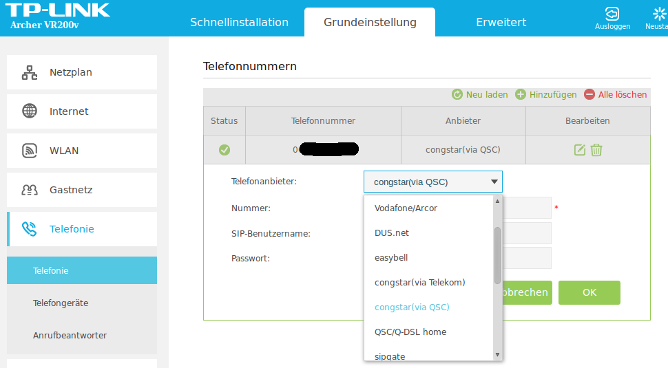 - Nach dem Firmwareupdate stehen beim Einrichten einer neuen VOIP-Telefonnummer die Provider "congstar (via Telekom)" und "congstar (via QSC)" zur Verfügung