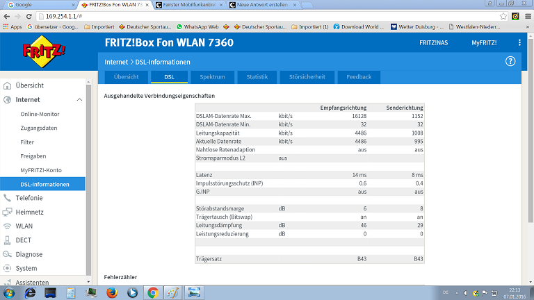 08.01.1613:12:59DSL ist verfügbar (DSL-Synchronisierung besteht mit 7011/995 kbit/s). -