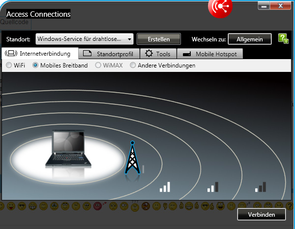 Als Tool um eine Verbindung ins Netz herzustellen, verwende ich das Lenovo eigene "Access Connection".