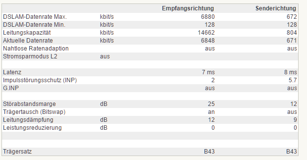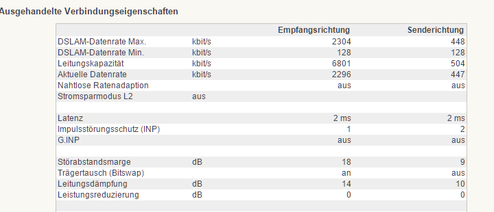 Jetzt stelle ich in meiner fritzbox zufällig fest, dass die eingestellte max. DSLAM Datenrate 2304 beträgt, obwohl die Leitungskapazität bei 6000 liegen soll (siehe anhängendes Photo).