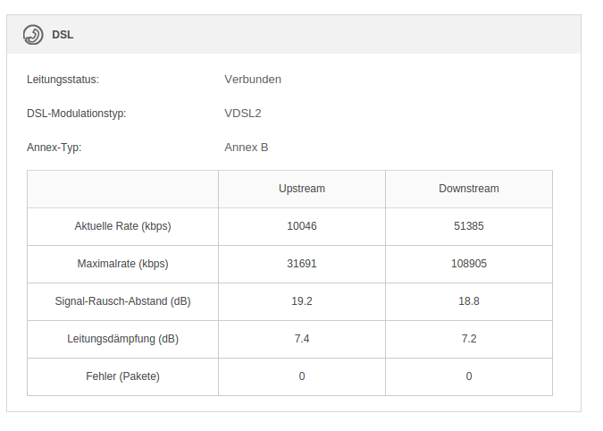 DSL Leitung ist frei, der Router erkennt die Leitung mit guten Daten