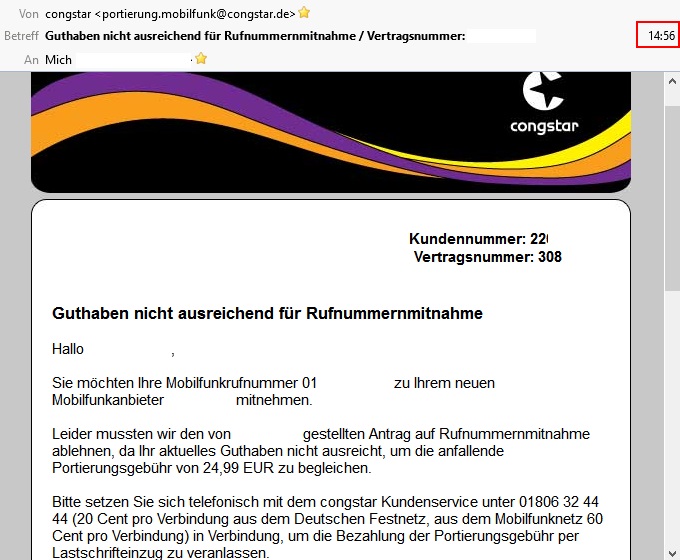 Beim neuen Anbieter nochmals die Portierung gestartet. Und was ist? ABGELEHNT wegen zu wenig Guthaben.