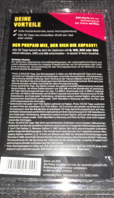 • Habe ein Starterpaket aus dem Penny für Congstar Prepaid bekommen