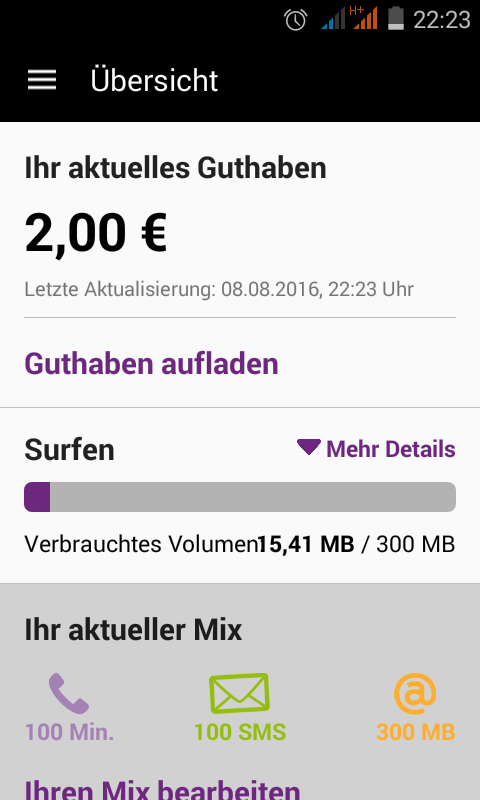 bei der Congstar App fehlen bei meinem Gerät die Anzeigen zu Minuten und SMS.