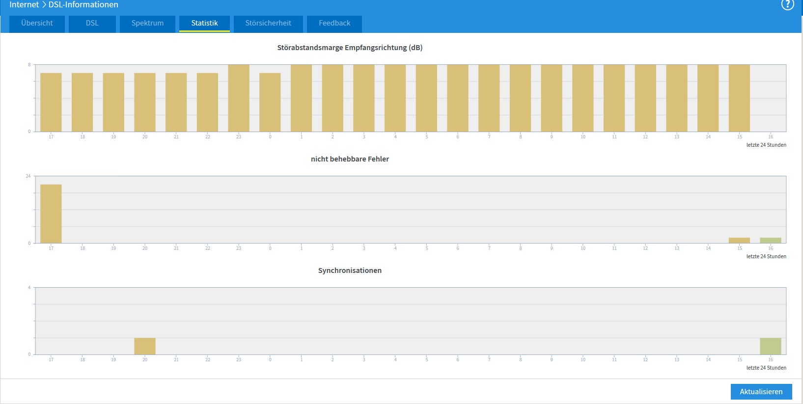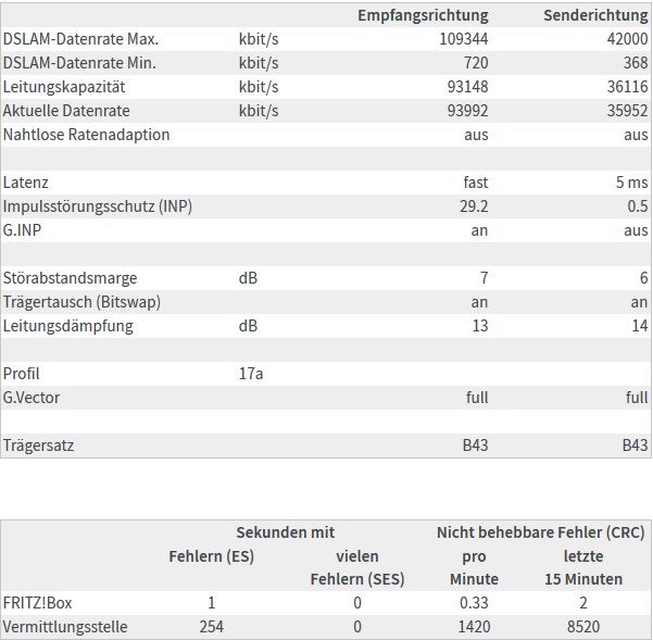 Doch wundert mich, das ALLE und vor allem zahlreiche Fehler seitens der Vermittlungstelle (mittlerweile aktuell 26000 in den letzten 15min 8| und dagegen nur 2 seitens der Fritz, was zu vernachlässigen ist) kommen und nicht von der Fritz selbst, wenn der DSL Information von der Fritz so trauen kann. Also gehe ich von der Aussage her aus, das es nicht an der Fritz liegt, sondern am Port in der Verteilerkasten bei uns in der Straße selbst....