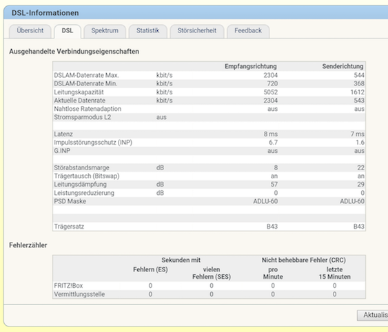 - Fritzbox Verbindungsparameter auf "Stabilität" gestellt