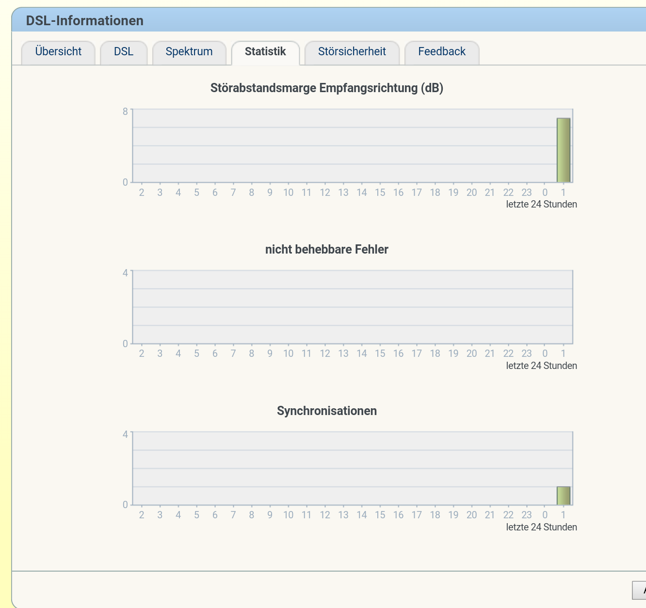 Ist die Leuchtanzeige für DSL-Synchronisation dauernd grün?