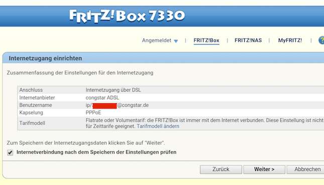 - Vertragspasswort wurde schon neu gesetzt (meinCongstar + Fritzbox)