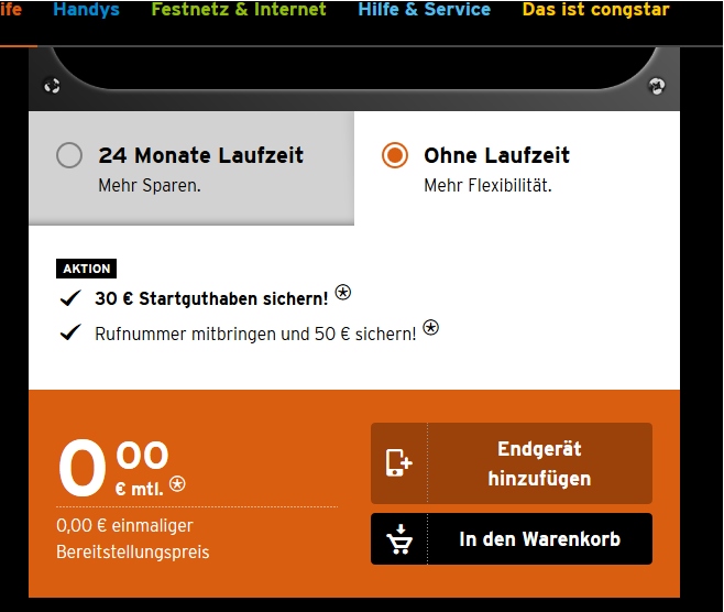 Zur Zeit läuft bei Congstar "Wie ich will" eine Aktion, wobei ich 30 Euro Startguthaben und auch 50 Euro Wechselbonus bekomme, wenn ich meine Rufnummer mitnehme.