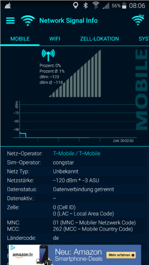 ich habe seit ca. 1,5 Jahren keinen Empfang bei mir zu Hause, was ich als normal sah. Mein Mann hat ebenfalls Congstar und hat zu Hause Empfang. Nach Rücksprache mit dem Support hab ich mal die SIM Karten getauscht und siehe da ich hatte Empfang, mein Mann nicht. Jetzt habe ich eine neue Sim Karte bekommen und war glücklich das ich Empfang hatte. Genau 1 Std. Jetzt geht es von vorne los. Immer die Meldung nicht im Netz registriert. Ich habe ein Samsung Galaxy S5.