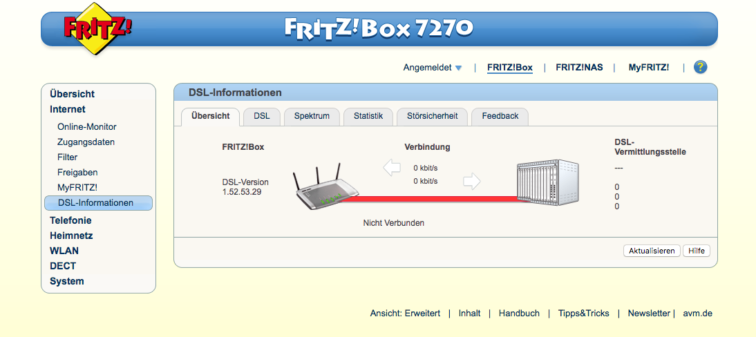 Der Router gibt im Log nichts aus, denn er kriegt ja kein Sync hin. Auch ein anderer Router nicht. Die Verkabelung habe ich mehrfach nach den Anweisungen Eurer Kollegen am Telefon geprüft.