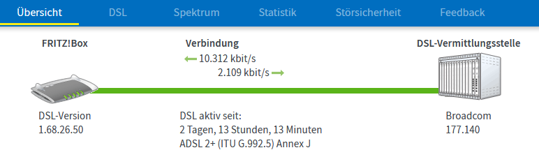 Seit längerem habe ich immer wieder Abbrüche der DSL-Synchronisation. Falls eine Verbindung (meist nicht stabil) aufgebaut wird, ist außerdem die Bandbreite spürbar eingeschränkt.