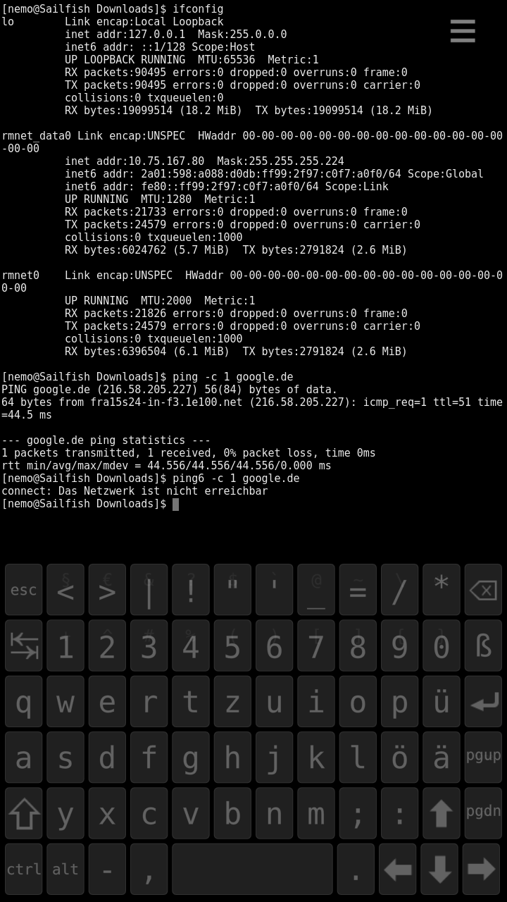 Ich habe ein kleines Problem> Gehe ich [ber mobile Daten online bekomme ich ywar eine IPv6 Adresse (beginnend mit 2a01) yugewiesen, kann dar[ber aber keine Verbindungen aufbauen (Beispiel> ping6 sagt, egal yu welcher Adresse, "Network is unreachable"). Ich bitte dies schnellstm;glich yu beheben da Verbindungen yu IPv6 onlz Servern sehr wichtig f[r mich sind.