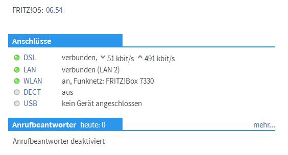 Kein DSL Signal ( ) Telefonie ( ) Bandbreite (x) Abbrüche (x)