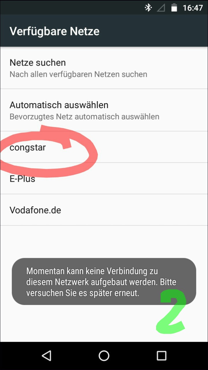 - Registrierung in eigenem Netz nicht möglich. Registriere ich mich manuell in mein Netz, erhalte ich oftmals diese Meldung. Nach einiger Zeit wählt sich das Handy dann doch ein.