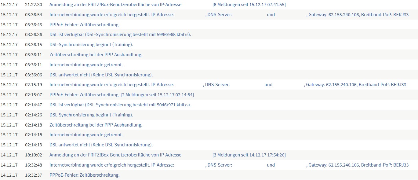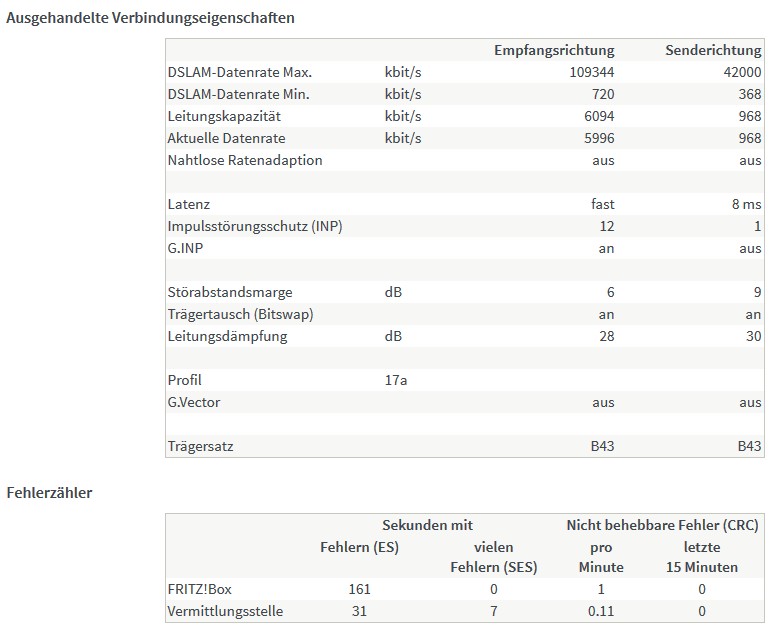 Kein DSL Signal (X) Telefonie (X) Bandbreite ( ) Abbrüche ( )