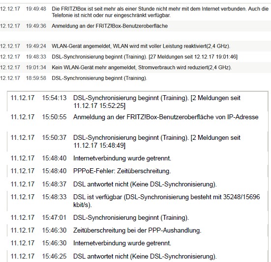 Kein DSL Signal (X) Telefonie (X) Bandbreite ( ) Abbrüche ( )