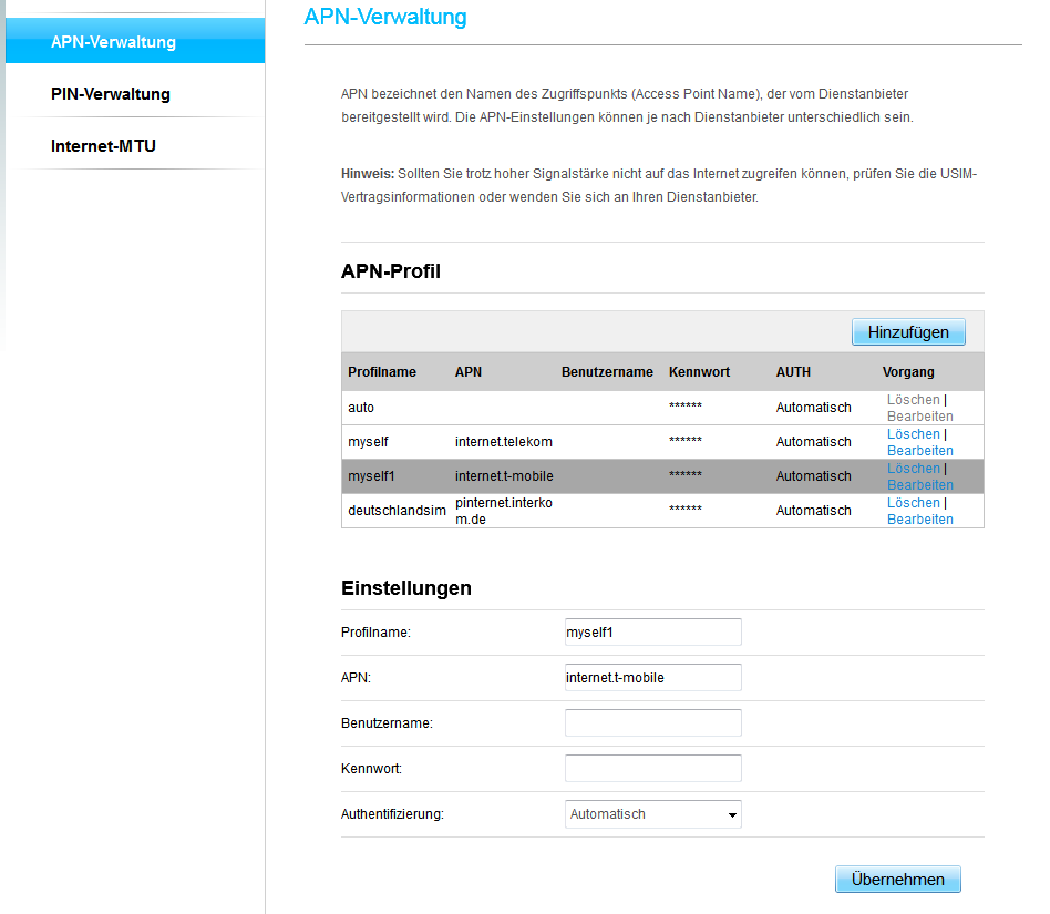 APN-Einstellung: