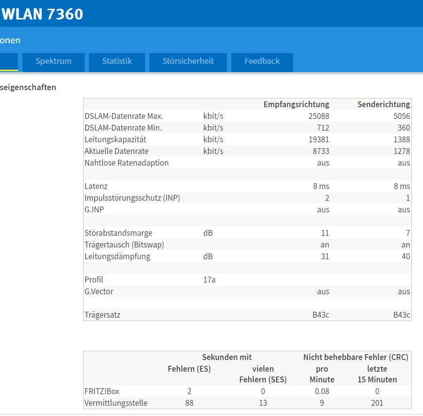 Screenshots sind dran. Laienhaft würde ich auf ein Problem in der Technik oder an der Leitung zu meine Wohnung tippen. Ggf. wurde in der Nachbarschaft ein anderer Kunde geschaltet, dessen Signal meine Leitung stört?!
