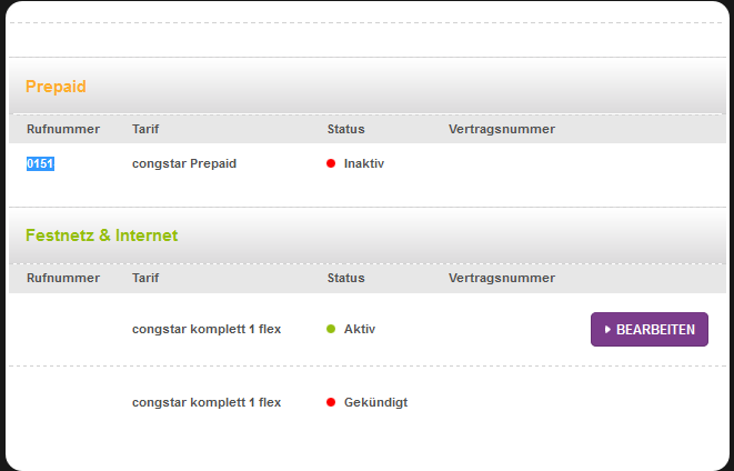 Bei Ansicht meiner Congstar Produkt Daten steht bei der Handy Nummer Status "Inaktiv" SIehe Bild im Anhang.