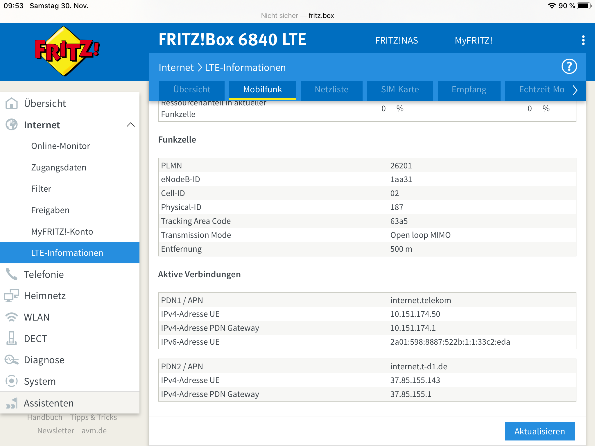 der Cube speist eine FritzBox 7390 + zwei mal 7270
