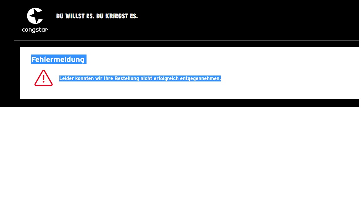 Beim Versuch Homespot L zu bestellen erhalte ich im letzen Schritt, gleich nachdem ich mich in mein bestehendes Kundenkonto eingeloggt habe, die Fehlermeldung: "Leider konnten wir Ihre Bestellung nicht erfolgreich entgegennehmen."