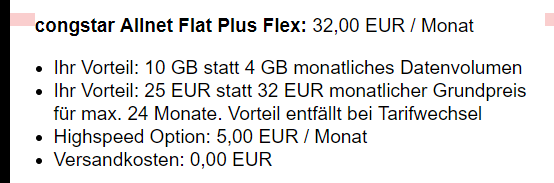 Bei meiner Bestellung Anfang Juni gab es die 10 GB Allnet-Aktion noch nicht, mein Plan war 37 € für Allnet Plus Flex mit 8 GB.