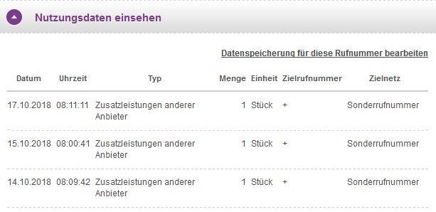 die Anzeige habe ich nicht zensiert, es ist ein original Screenshot meiner Nutzungsdaten.