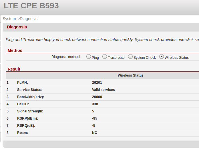 Sichtkontakt ohne Hindernisse aus meinem Fenster, da wir am Hang liegenMein Router sagt diese Werte, wenn ich die optimale Stelle im Raum innen an der Hauswand in Richtung Funkmast gefunden habe: