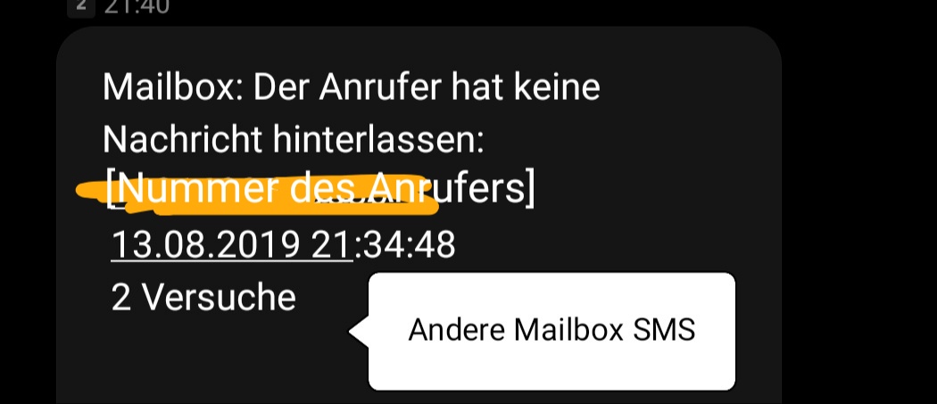 Nämlich das in der SMS Nachricht nicht nur 'eine neue Nachricht auf der Mailbox' und die Uhrzeit des Anrufes steht, sondern die Uhrzeit des Verpassten Anrufes, die Nummer des Anrufers und die Anzahl der Versuche, ob der Anrufer eine Nachricht hinterlassen hat und vieles mehr!