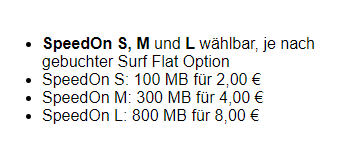 Zudem gibt es noch folgende SpeedOn-Optionen: