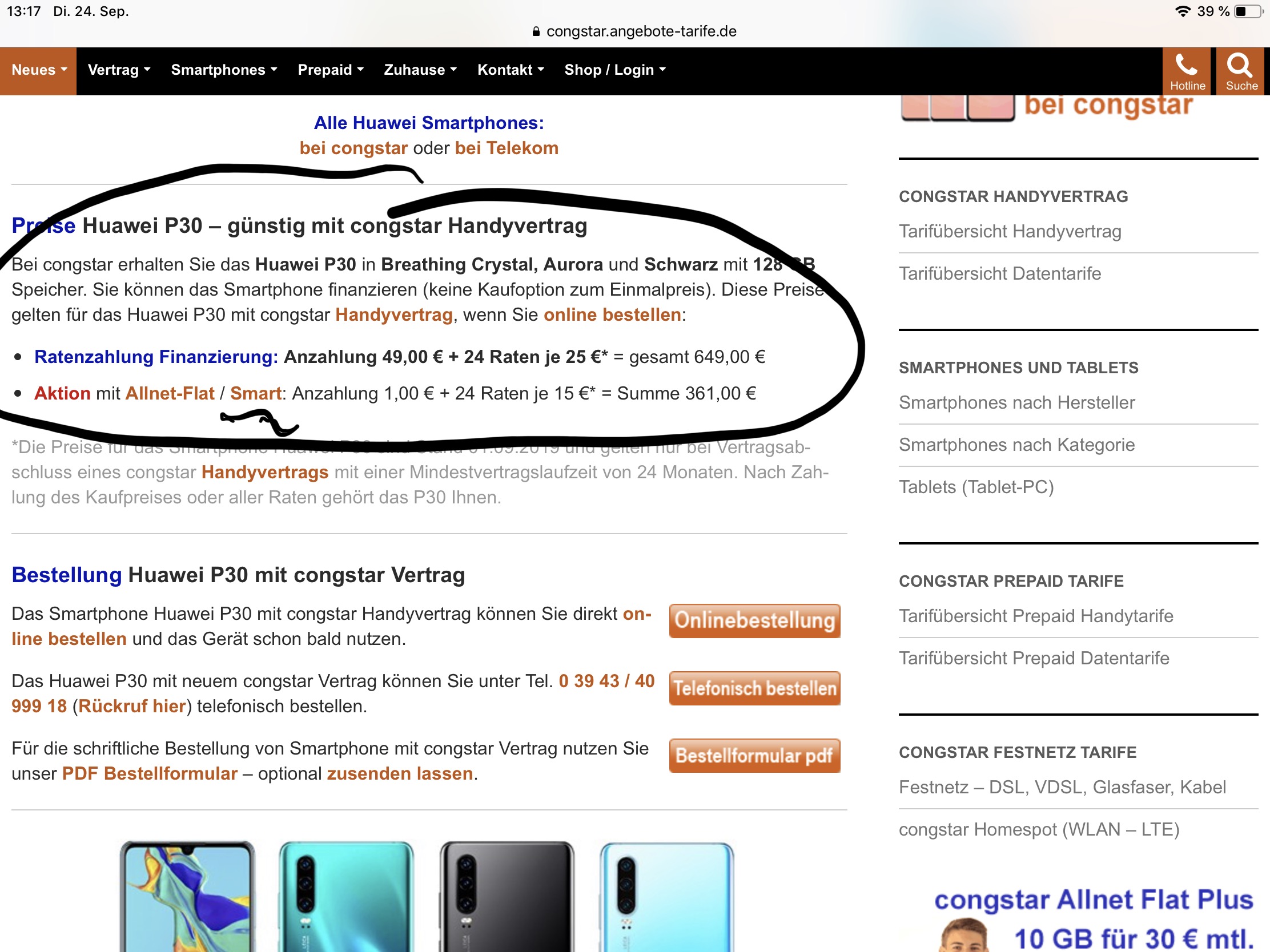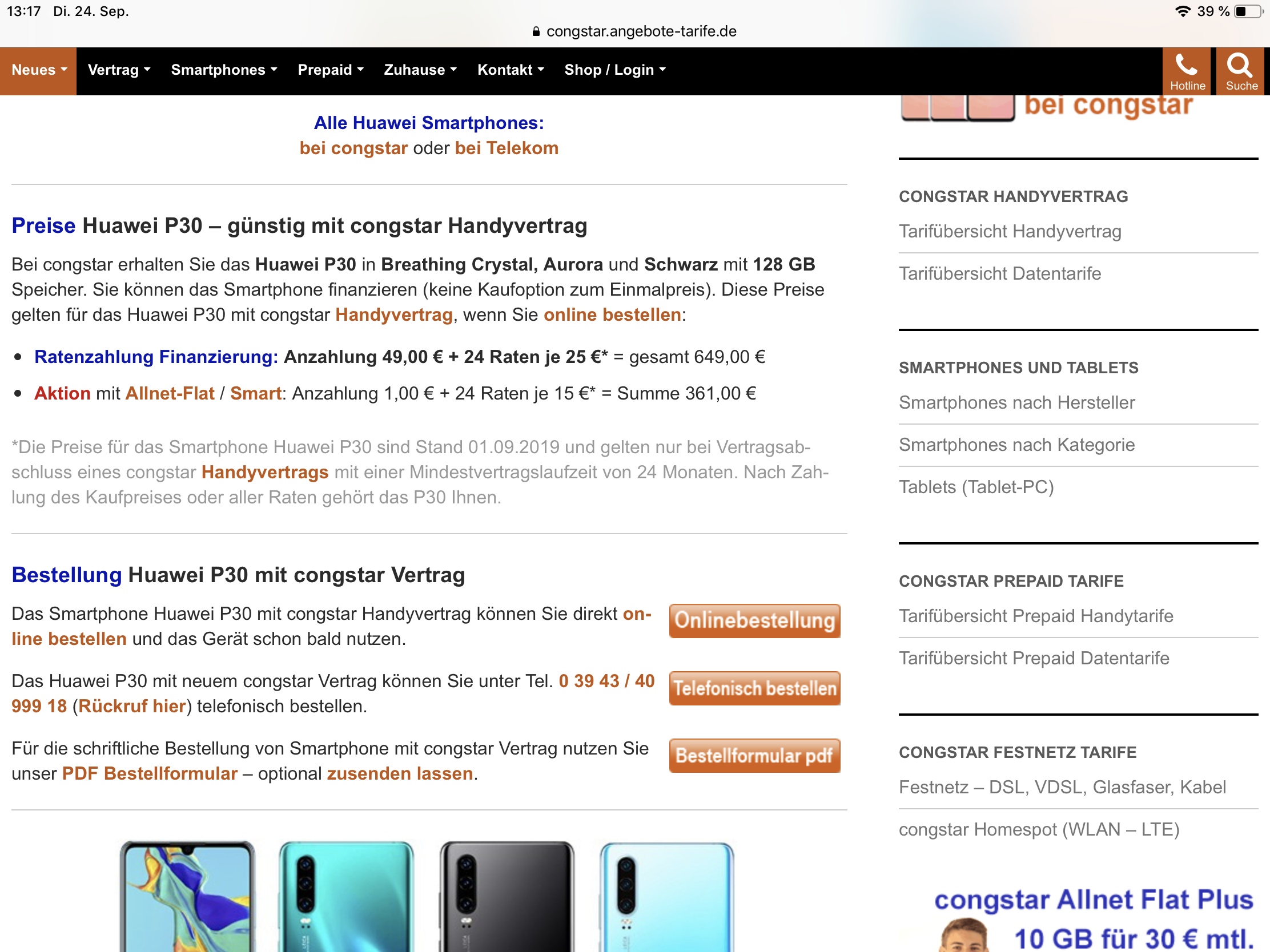 Unsere Seite findest du auf congstar.de - Angebote für deinen Tarif findest du im meincongstar Kundencenter. Das Huawei P30 verkaufen wir auch direkt. Ergänze doch deine Kundennummer und deinen Namen im Forum-Profil. Dann kann ich mir deine Daten aufrufen und einen Überblick verschaffen.