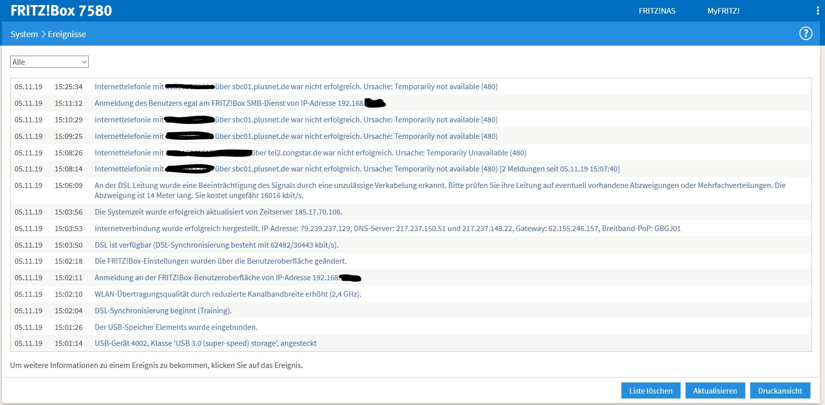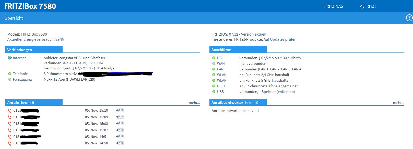 Ich hänge noch zwei Bilder vom Status der Fritzbox 7580 an.