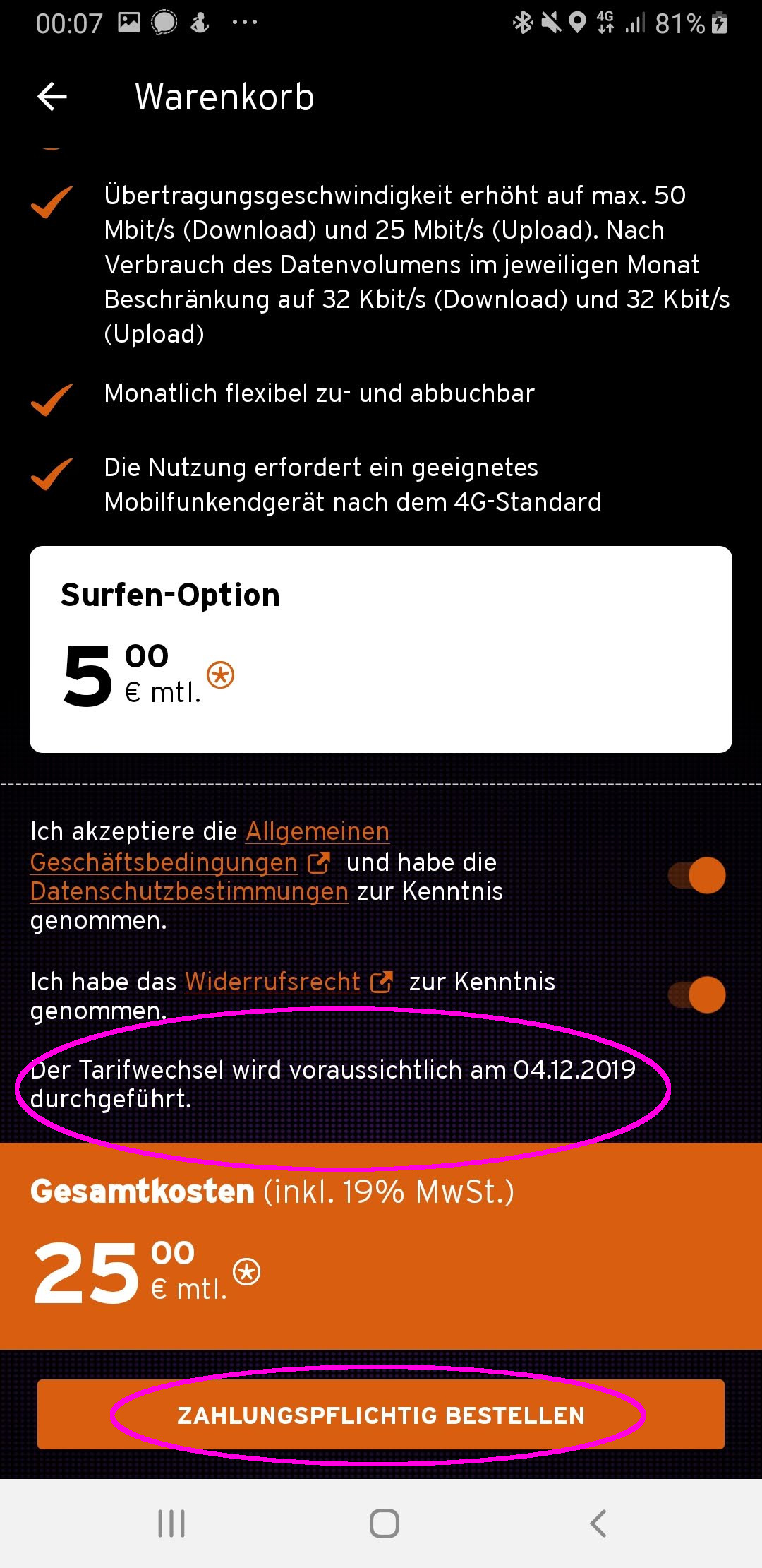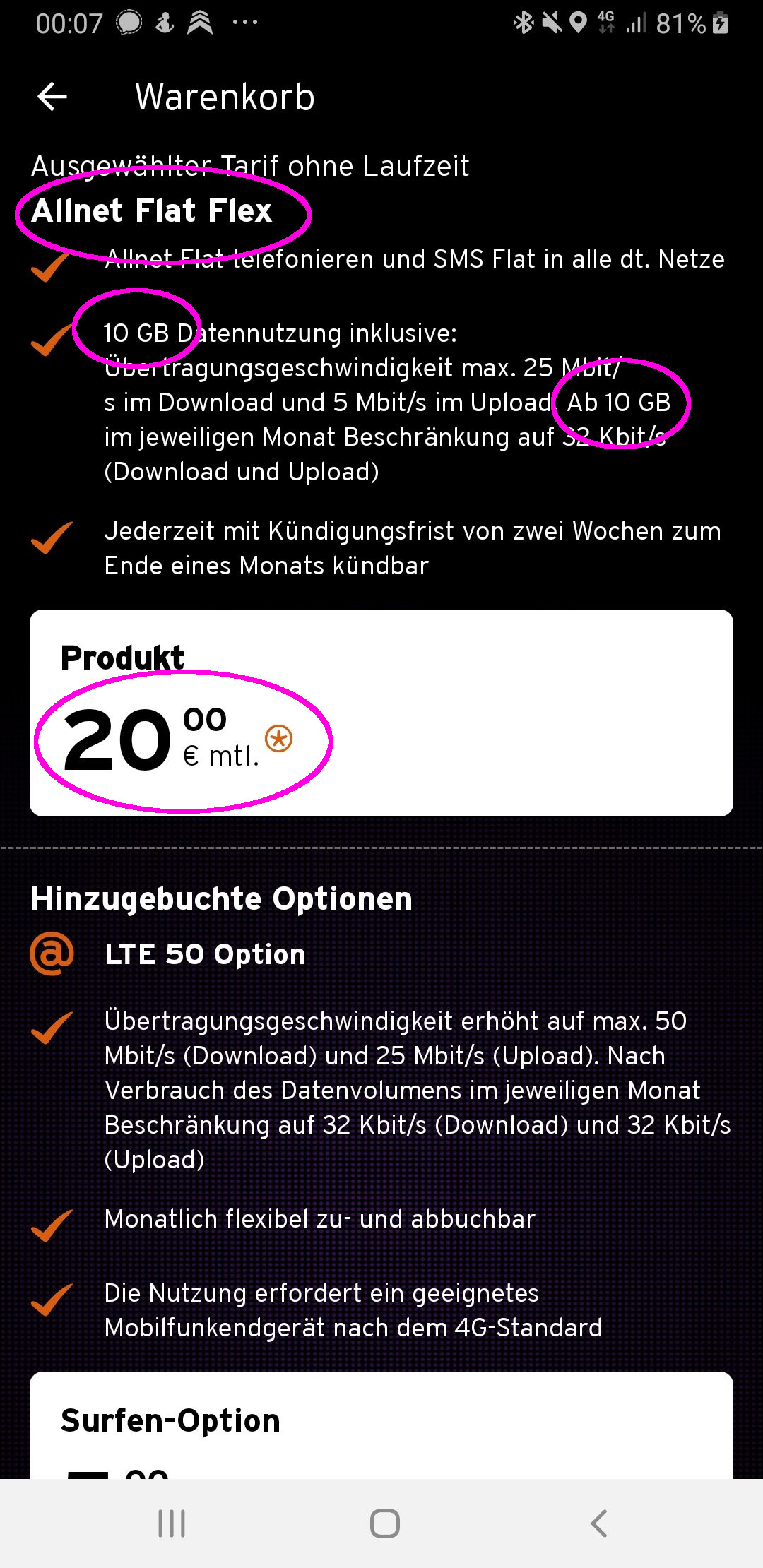 8 GB anstatt 10 GB, CW-Tarif (Tarifwechsel), E-Mail Support frechheit