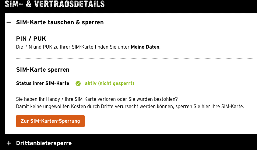 Jetzt habe ich aber das Problem, dass unter dem genannten Menüpunkt die Option zum tauschen der SIM-Karte verschwunden ist. Ich kann dort nur noch "SIM-Karte sperren" auswählen. Die Option zum tauschen der Karte war vor meiner Aufladung und Addressänderung definitiv noch da.