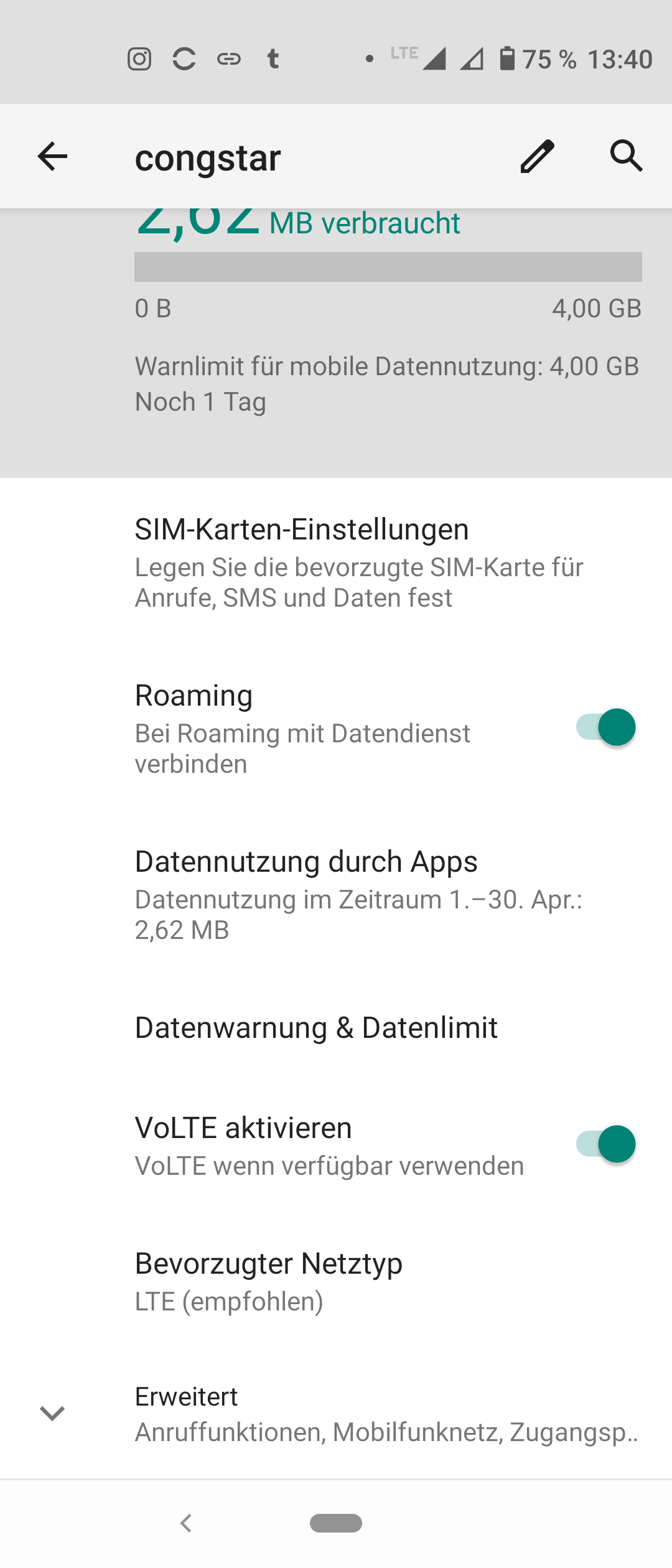 Daraus schließe ich, dass es an der Kombination von meinem Sony mit der Congstar Sim Karte liegt....