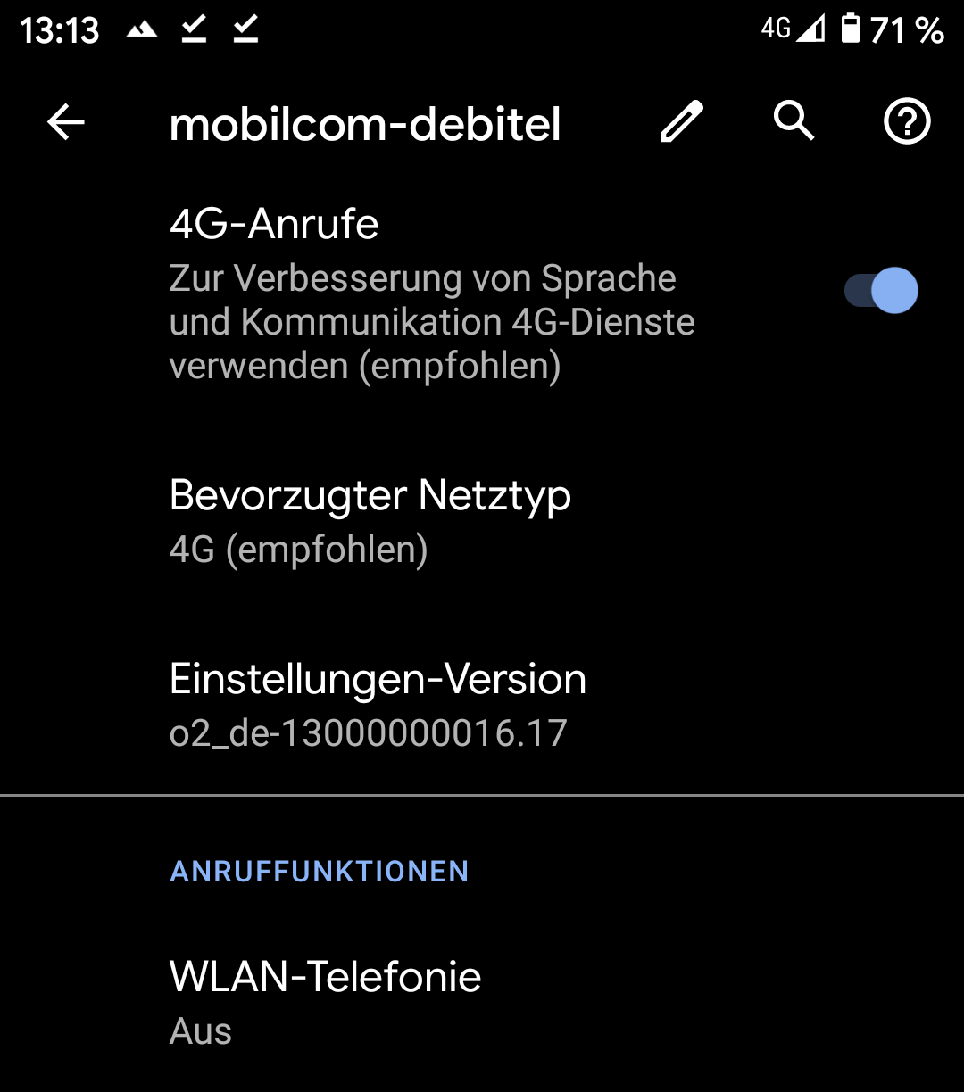 Nun zum Problem: Leider kann ich, warum auch immer, kein VoLTE und/oder WlanCall nutzen. Bei Freenet FUNK hatte es noch wunderbar geklappt. Bin mit meinem Latein am Ende. Habe noch einige Screenshots erstellt, vielleicht kann ja jemand von den Profis oder Technik weiterhelfen.