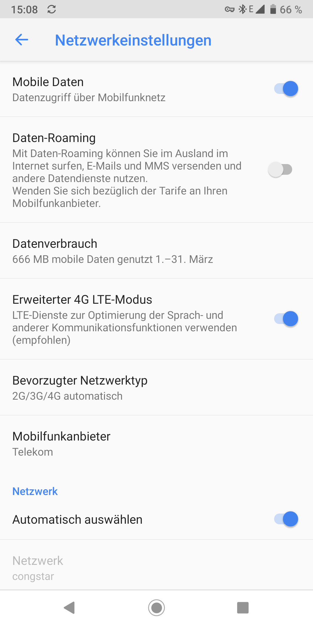 Die Einstellungen sind auch dieselben, die ich bei dem Prepaidtarif mit LTE hatte.