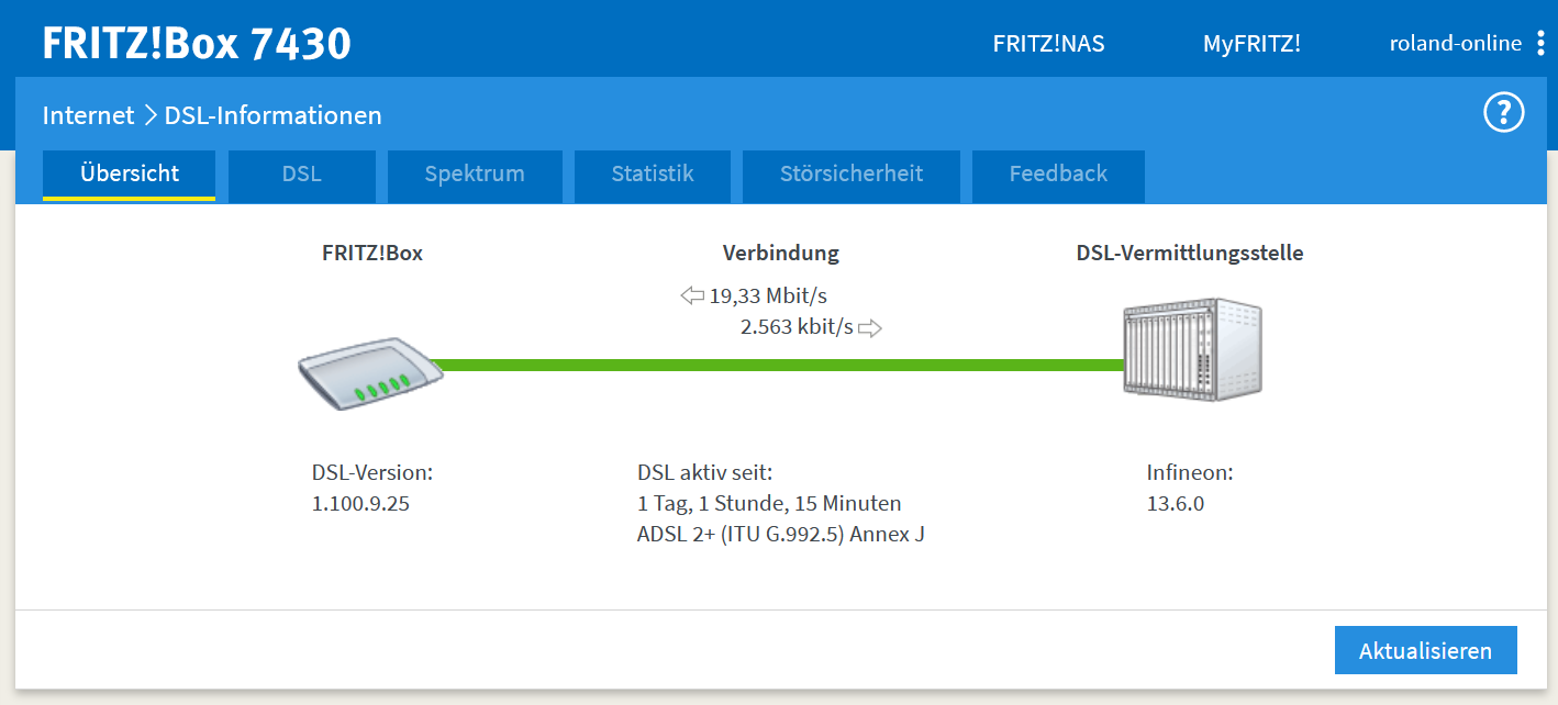 - Mein letzter Analyse-Stand vor Ort war eben, absolut instabile DSL-Verbindung bzw. in der FB-DSL-Übersicht (Bild 1) konnte man es wirklich rot/gelb/grün "blinken" sehen.