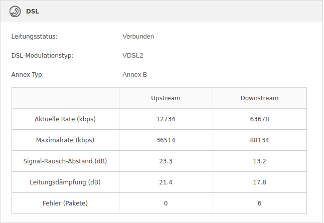 Aus meinen Unterlagen ergibt sich auch kein Hinweis über den von der Telekom bereitgestellten Anschluss (VDSL ohne/mit Vectoring).
