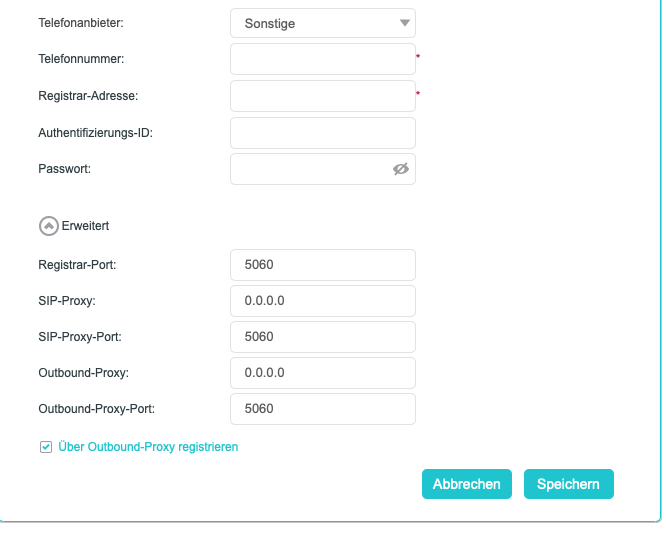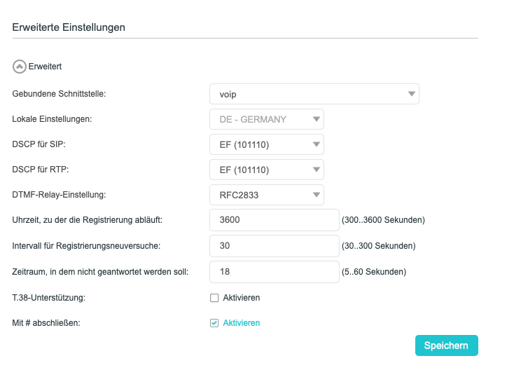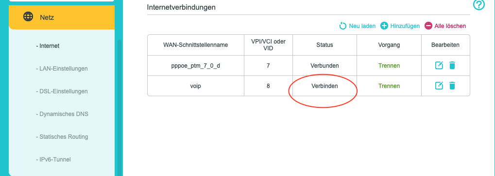 Bei den Interneteinstellungen stand bei VOIP noch nie verbunden, er versucht immer zu verbinden: